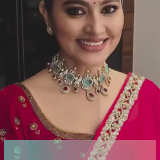 Blue and Red Diamond Replica Grand Necklace: Celeb-Inspired
