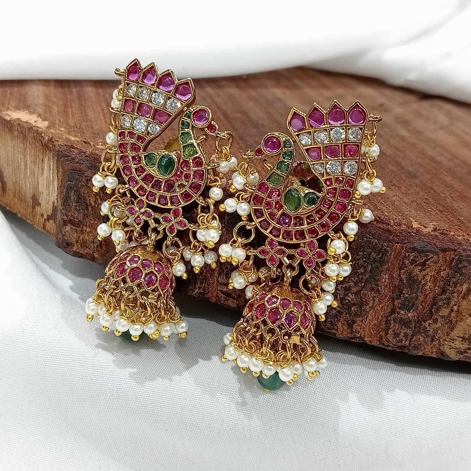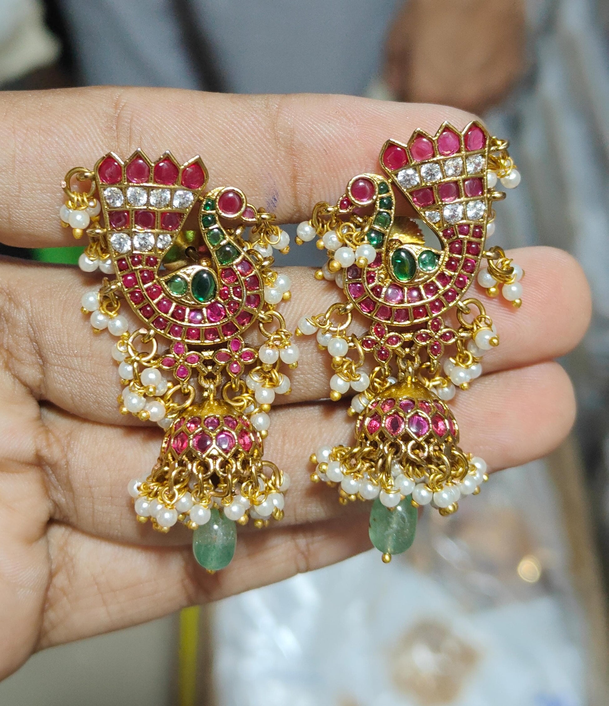 Premium kemp stone peacock jumkas